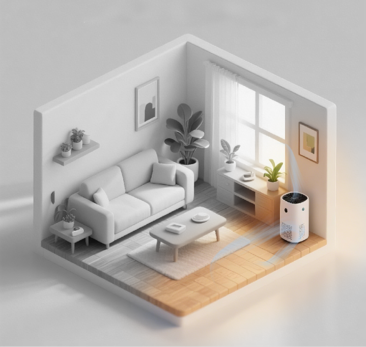 目前市面上多数空气净化器在处理二手烟时存在明显短板——颗粒物过滤没问题,但对烟雾中复杂的气态有害物去除速度慢、深度不够,导致异味长时间滞留。拾梧FW01从研发初期就将目标锁定在“高效除烟”,解决了传统机型净化反应慢、除味不彻底的问题。